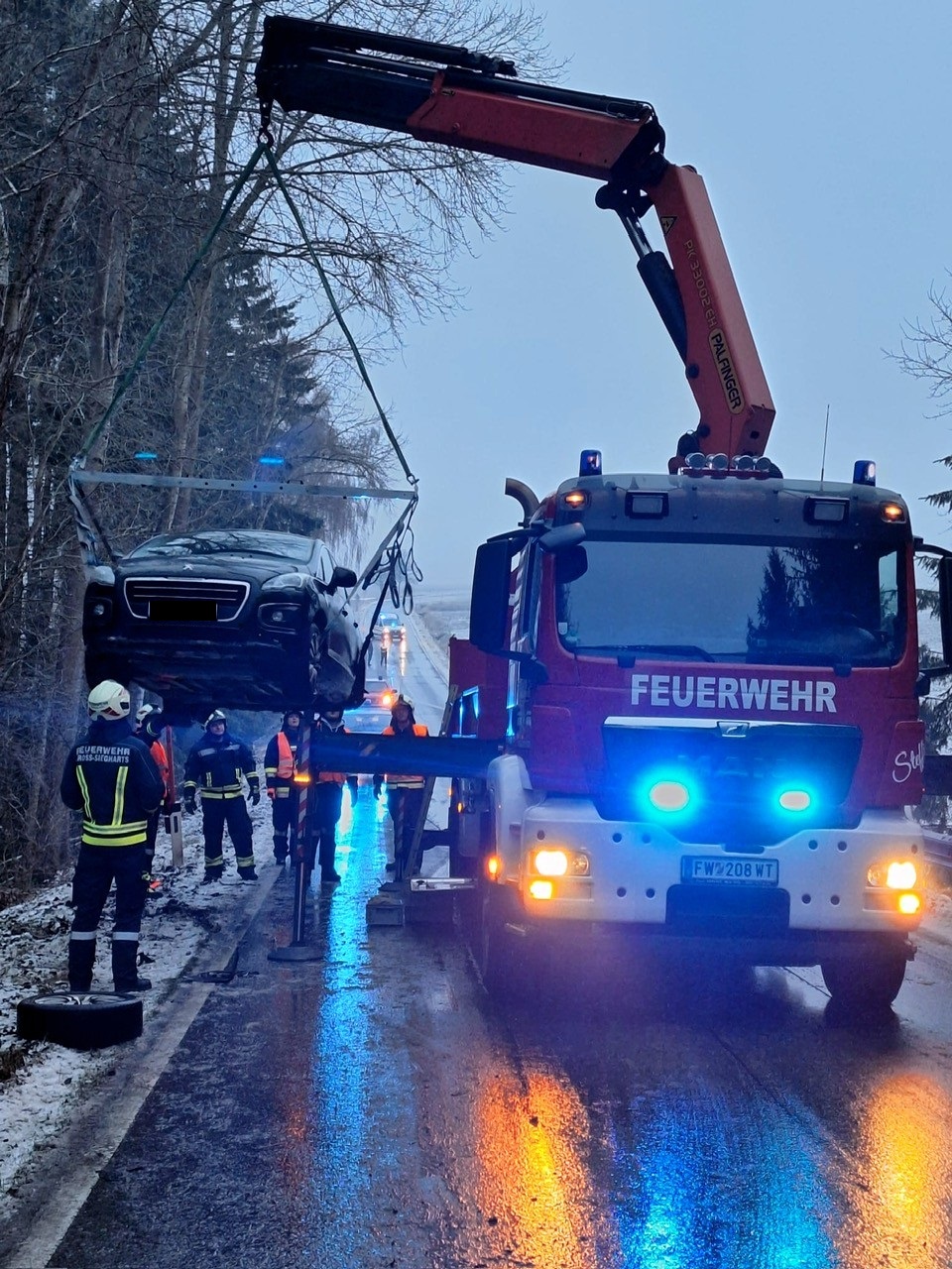 Um ca. 7.00 Uhr kam es zu einem Verkehrsunfall auf der L60 Richtung Ellends. Ein PKW Lenker war aufgrund der Fahrbahnverhältnisse ins Schleudern gekommen, prallte gegen eine Waldzufahrt und kam mit seinem Fahrzeug am Bankett zu Liegen. Der Fahrzeuglenker wurde zur medizinischen Abklärung in ein Krankenhaus gebracht. Die Feuerwehr übernahm die Bergung des verunfallten und fahruntauglichen PKWs.